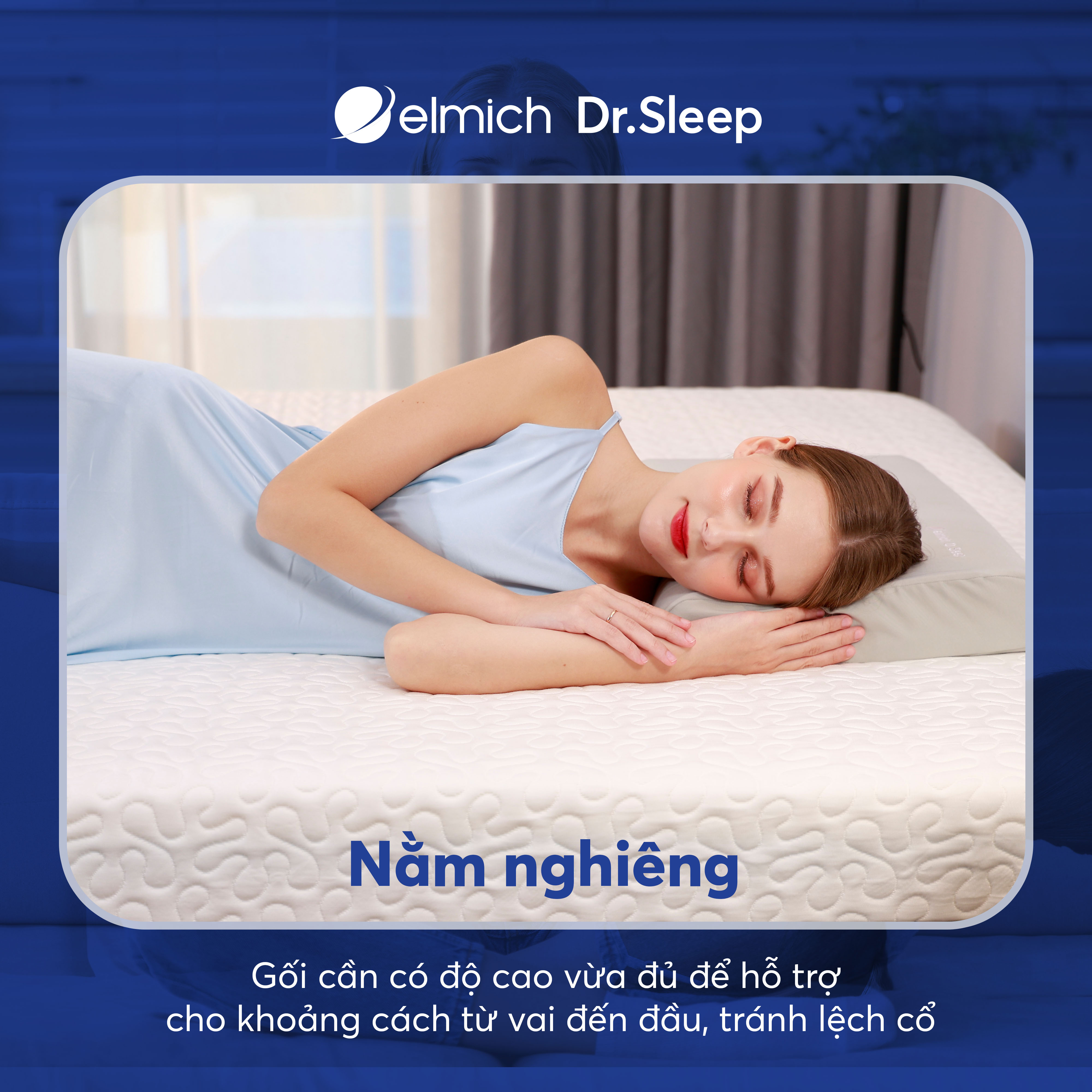 Ngủ nằm nghiêng: Gối cần cao hơn để đảm bảo khoảng cách giữa đầu và vai được lấp đầy, giúp giữ thẳng cột sống khi nghiêng.