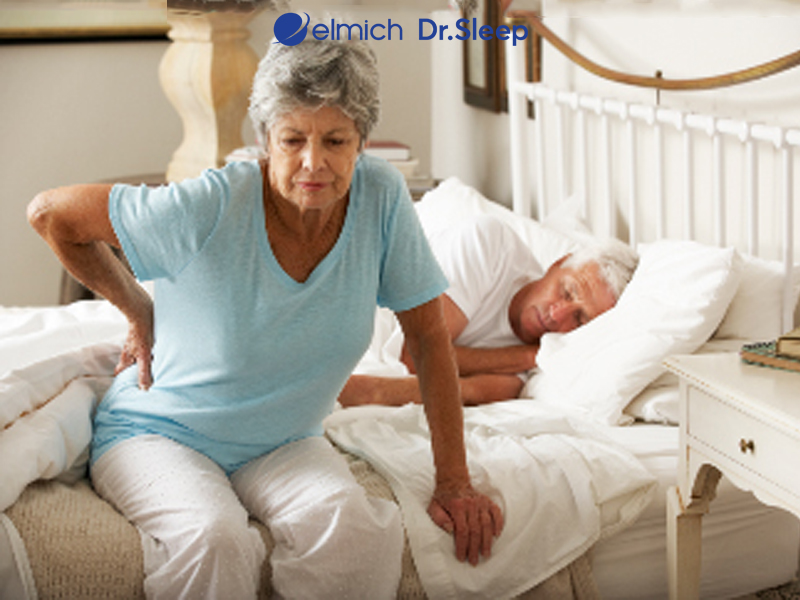 - Đau lưng, mỏi vai gáy, thoái hóa xương khớp: Tuổi tác kéo theo tình trạng loãng xương, thoái hóa cột sống, thoát vị đĩa đệm... khiến người già thường xuyên cảm thấy đau nhức khi nằm ngủ trên bề mặt nệm không phù hợp. Nếu nệm cho người cao tuổi quá cứng hoặc quá mềm đều có thể khiến tình trạng đau nhức trở nên nghiêm trọng hơn.