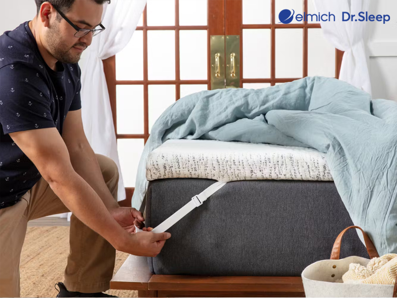 Ngoài ra, ưu tiên chọn topper có dây đai hoặc thiết kế chống trượt để cố định chắc chắn trên nệm.